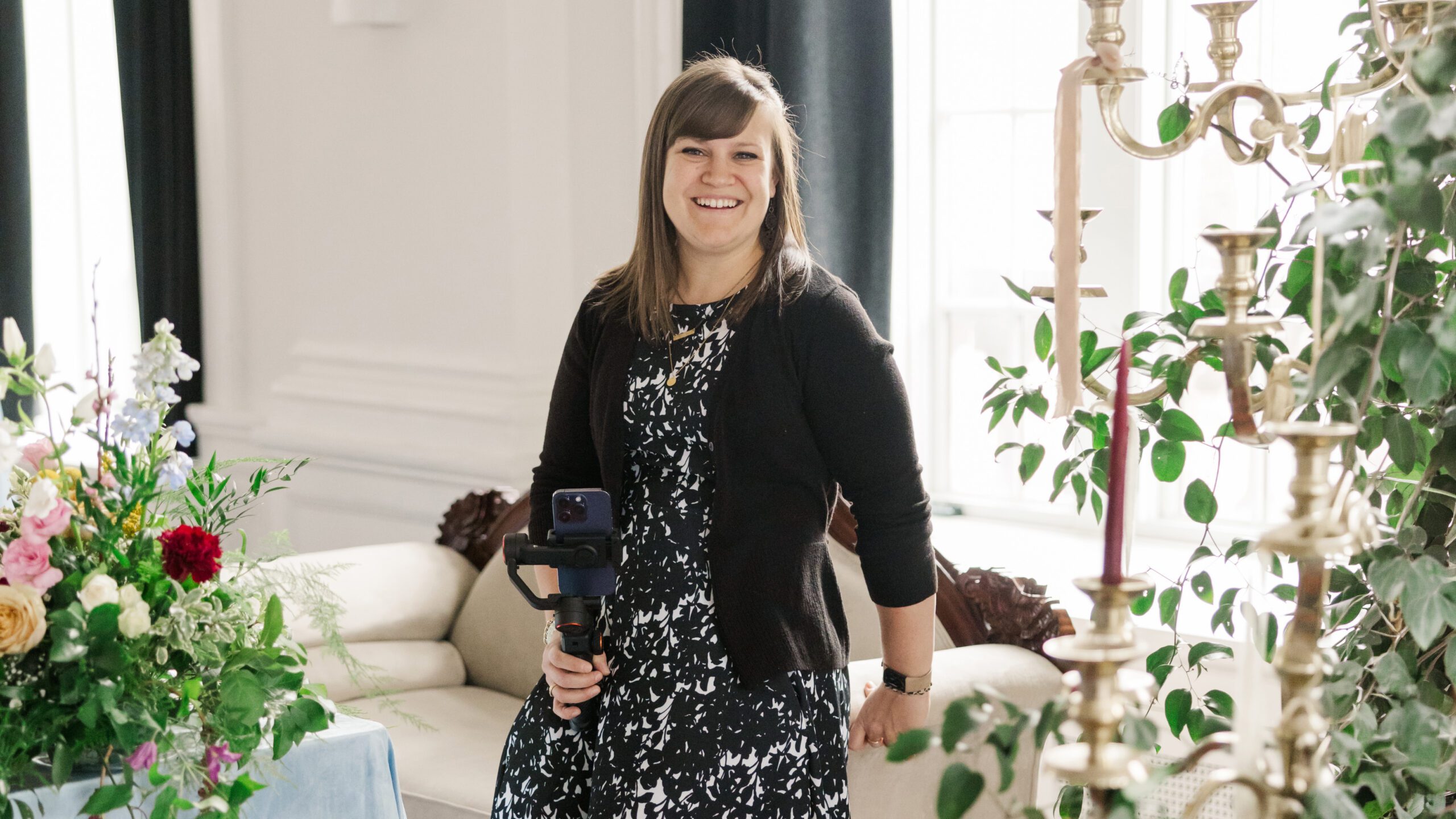 A wedding content creator documents your day in real time using short-form video and candid behind-the-scenes footage.